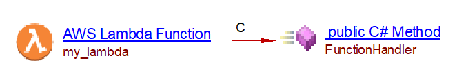 Let us consider a source code defining a lambda function having a dotnet runtime (for instance dotnetcore3.0) and the handler function is given by the handler function fullname. If the lambda function is deployed using a supported deployment framework (such as CloudFormation), the analysis will create a lambda function. If the current extension finds a C# method matching the handler fullname a link to that method will be added from the lambda function.