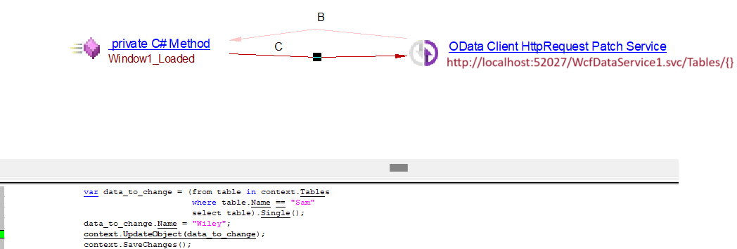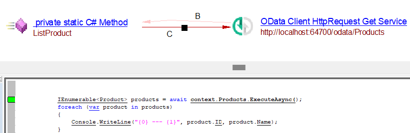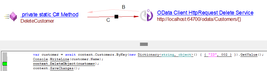 | callLink | Link from C# method making API call to service object (eg. OData Client HttpRequest Get Service) |
