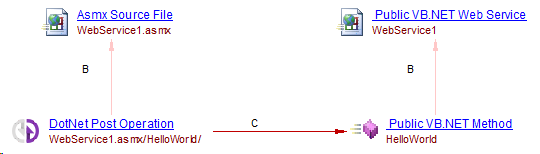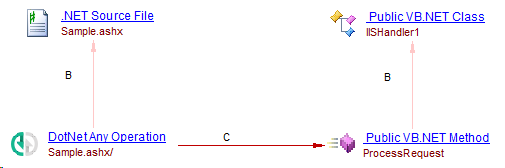 A DotNet Controller Action is created for each controller method, and a call link is created from this action to the method: