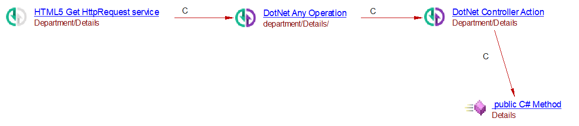 Controller actions are therefore always present in transactions, but operations are present only for purely HTMLclients (not clients using razor). As the same controller action may be called for several types of HTML5 resource services, and even several types of URLs (e.g: department/details, department/details/{}, …), operations which are not called from a client are deleted at the end of analysis. In many cases clients are written in razor, as such it would not be a ideal to keep all operations as it would produce false transactions.
