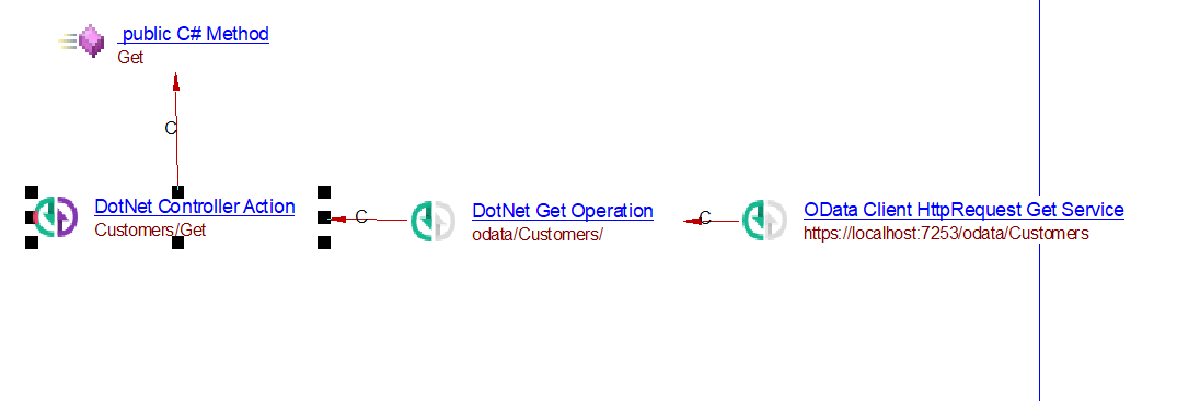We create links between controller action and DotNet operations. When used with the extension com.castsoftware.dotnet.odata we also create links towards web services.