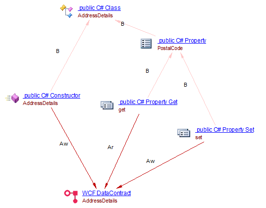 - accessWriteLink from each .NET setter of each property of the class to the WCF Data contract object.