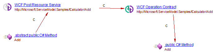 - from the WCF resource service to the WCF operation. This last link is created by the “web service linker” extension comparing the urls which are matching.
