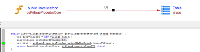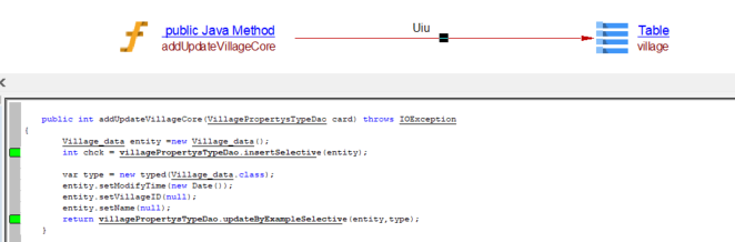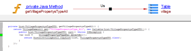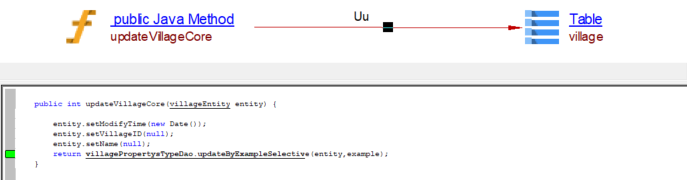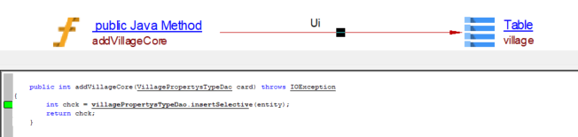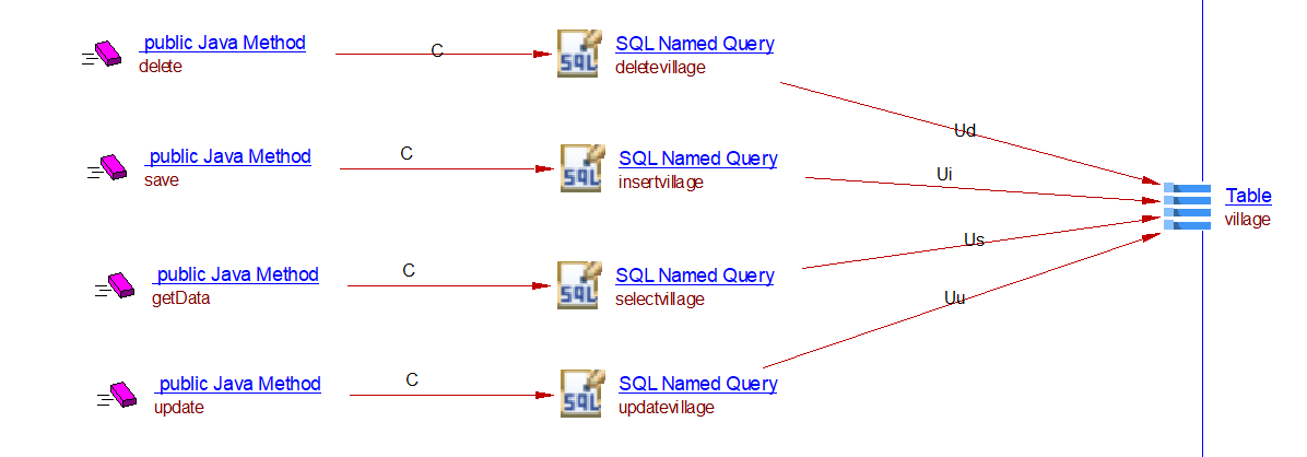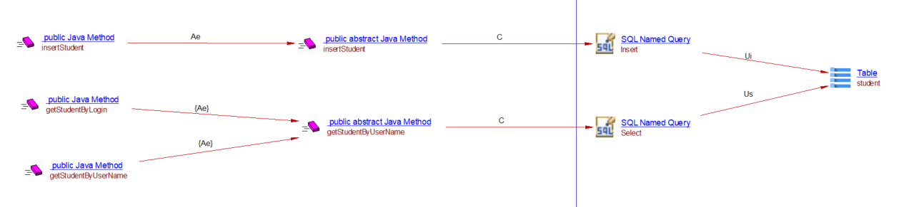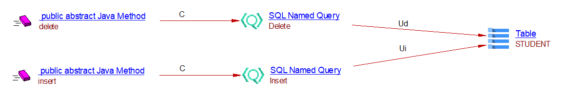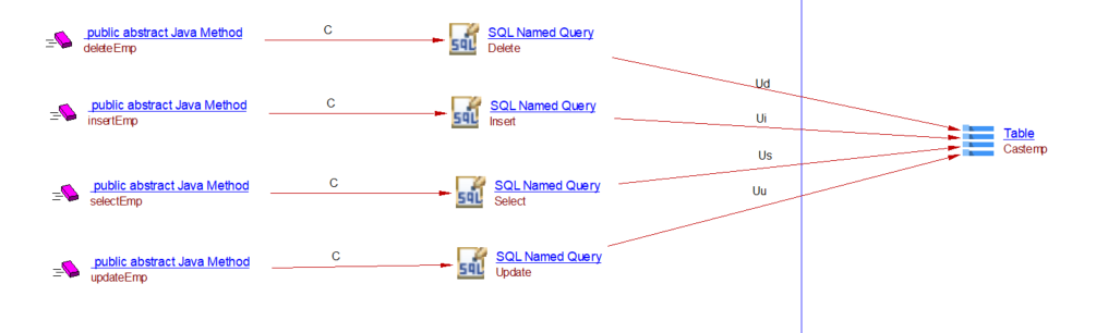 - Use (typed with Select, Delete, Insert, Update) link between an Java Method object and a Table object.