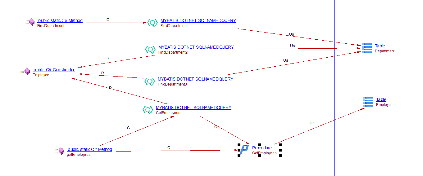 - Use (typed with Select, Delete, Insert, Update) link between an MYBATIS DOTNET SQLNAMEDQUERY object and a Table object.