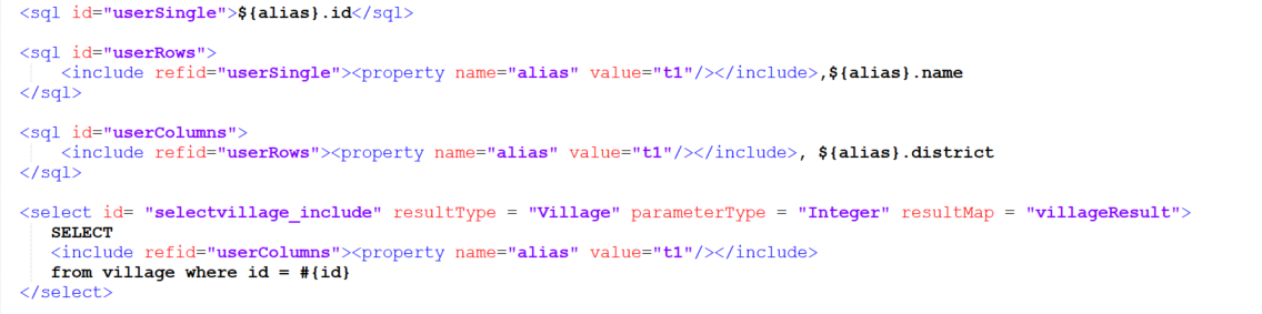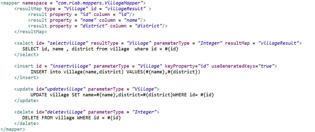 <select id="getSelectVillage" resultMap="SelectVillage">