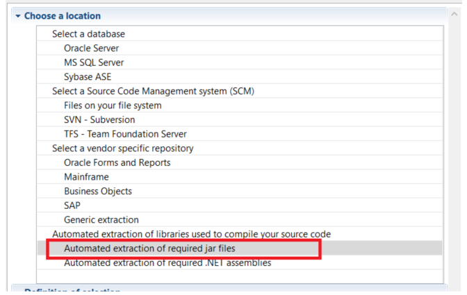 This extension should be used when you want to extract JAR based source code that is stored in a remote Maven repository. For example, when your JEE application relies on JAR files and the initial extraction of this application in the CAST Delivery Manager Tool throws “missing library file” alerts, you can use this extension to extract the missing files from a remote Maven repository and resolve the alerts.