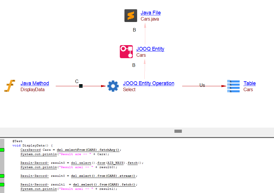 | useLink | jOOQ SQL Query | Table, View | Created by SQL Analyzer when DDL source files are analyzed |