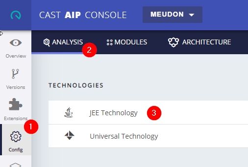 The Message Queues extension does not contain any discoverers or extractors, therefore, no “Message Queue” specific projects will be detected. Your Message Queue source code should be part of a larger Java/JEE related project which you are also analyzing, and as such, JEE Analysis Units will be created - simply ensure that the path to your Message Queues source code is included in these JEE Analysis Units: browse to the Application - Config panel and expand the JEE Technology option (3):