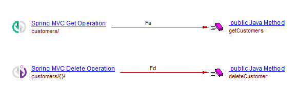 Note on image: The links of type fire (F) are substituted by callLinks (C) in com.castsoftware.springmvcversions >=1.5.3.