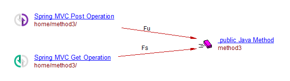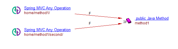 Note that the Spring MVC Any Operation will be created below the same Java File (denoted by the Belong link) where the referenced controller is found. In addition to the above mentioned links, a callLink from the Spring MVC Any Operation object to the controller class’ constructor method (if present) will be created when using the above mentioned Method 1-2-3 mapping approaches.