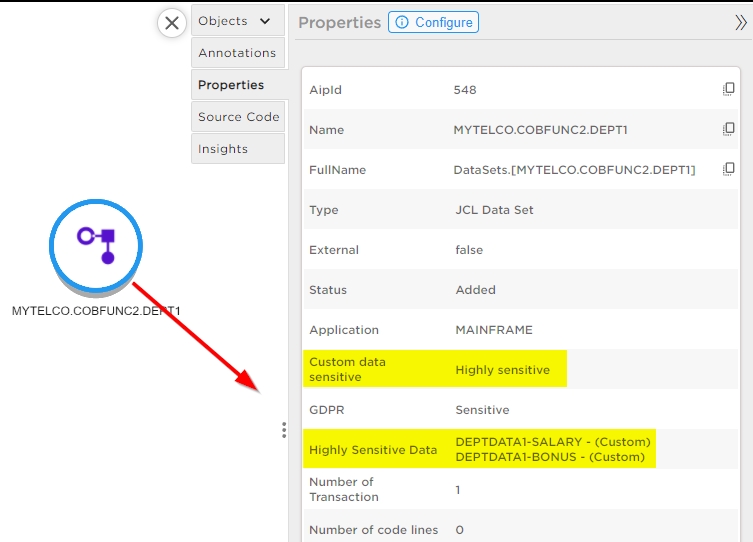 This extension, when installed with the Mainframe Analyzer (≥ 1.0.8), will search your Mainframe objects for specific key words (that you define) and when a key word is found, a property will be added to the object that marks it as sensitive.