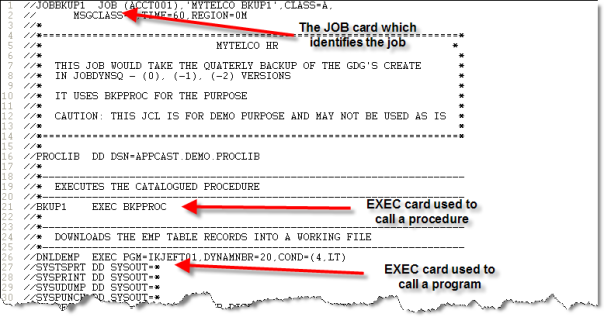 A Mainframe application is often based on several types of components such as programs, JCL jobs, databases, files, transactions, maps etc.
