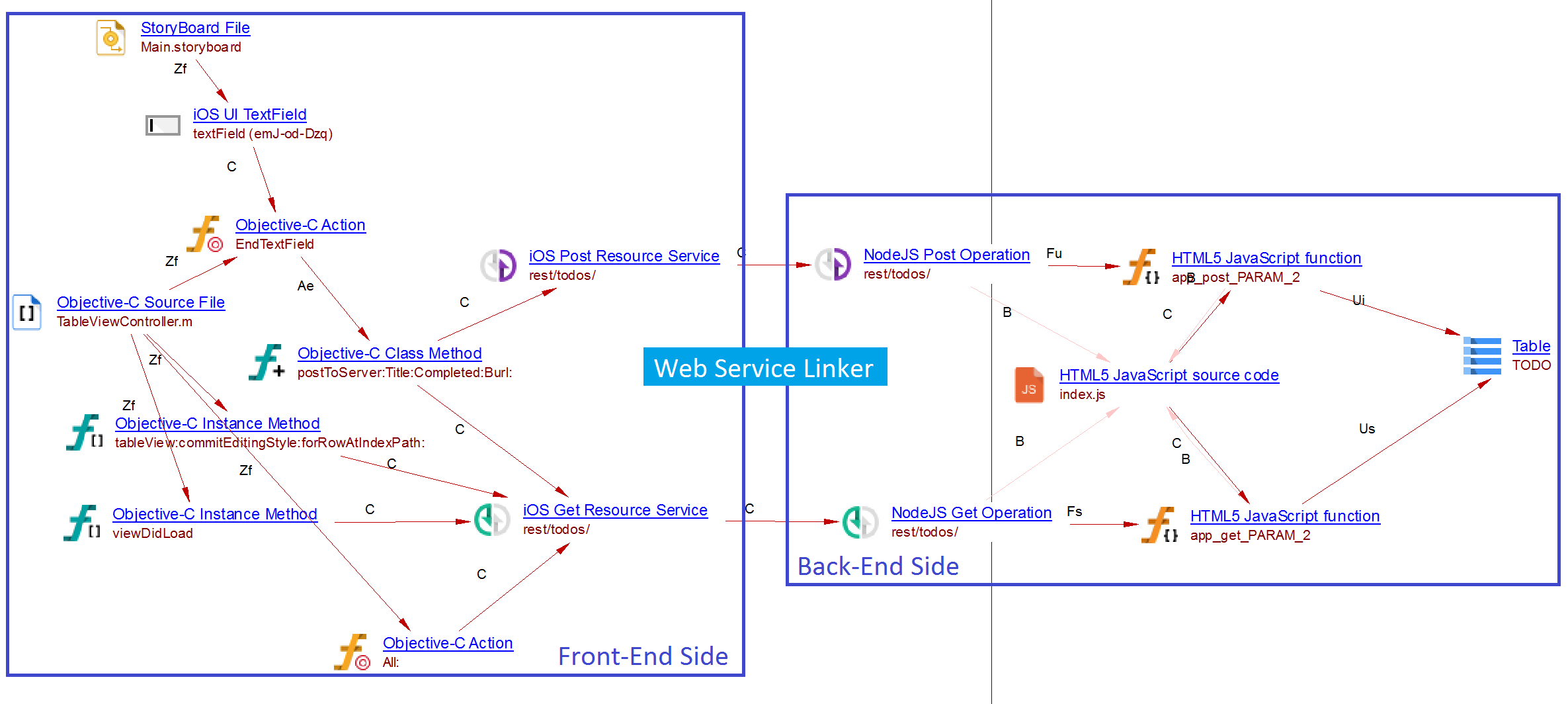 If you have an iOS mobile application written in Objective-C and built with Xcode and you want to view the source code object types and their links with other objects, then you should install this extension. Regarding Front-End to Back-End connections, we support the following cross-technology stacks: