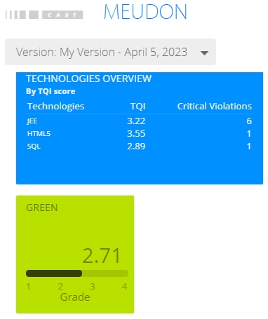 With this in mind, CAST has developed a specific indicator called Green (based on CAST’s algorithms and measures) that is designed to show how efficient (on a scale of 1.00 - 4.00, with 4.00 being the best possible score) an Application is. The indicator can help identify pieces of software that could be optimized (by evolving the code) to require less CPU resources.