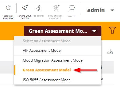 Out of the box, a specific Green Assessment Model entry is available: