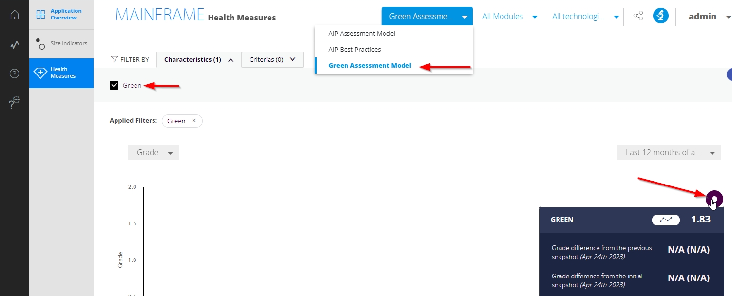 When using ≥ 2.11.2 clicking the tile will take you direct to the Green Health Factor displayed in a dedicated Green Assessment Model: