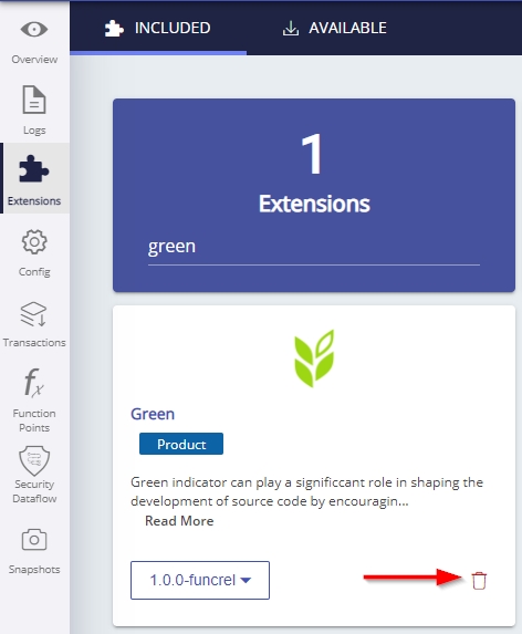However, removing the extension does not remove the quality indicator that generates the results for this extension. This indicator is retained so that previous snapshots (where the Green quality indicator was used) are kept consistent - in other words generating a new snapshot will include the Green quality indicator. If you do not want to see any results for the Green indicator in your current, future or previous snapshots of your application, you need to: