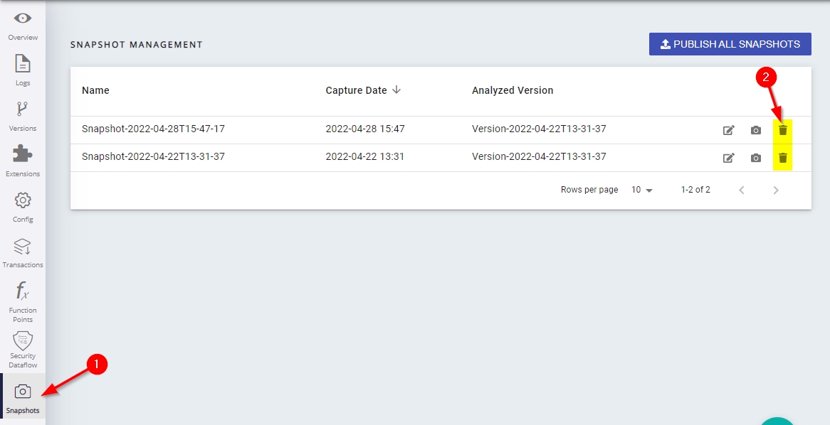 Remove the extension as described above and remove all previous snapshots using CAST Imaging Console: