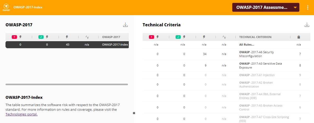 - OWASP-2021, OWASP-2017, OWASP-2013 top 10 application security risks as technical criteria grades,