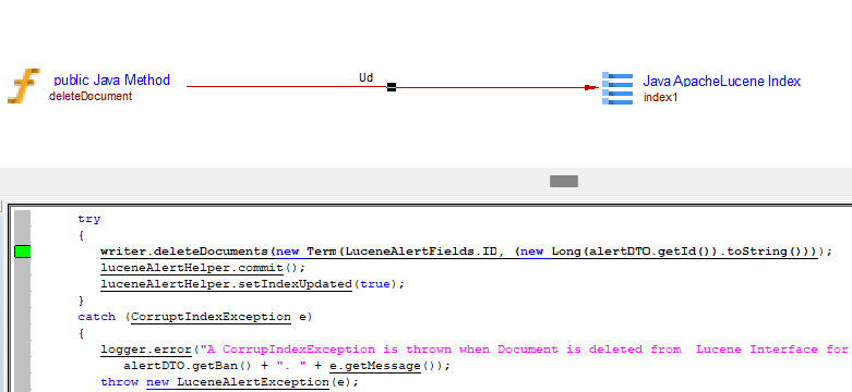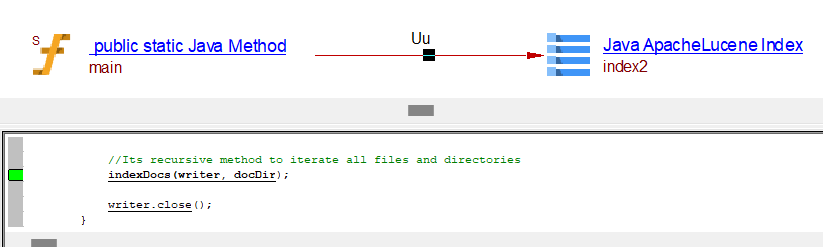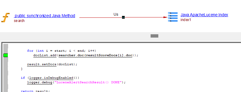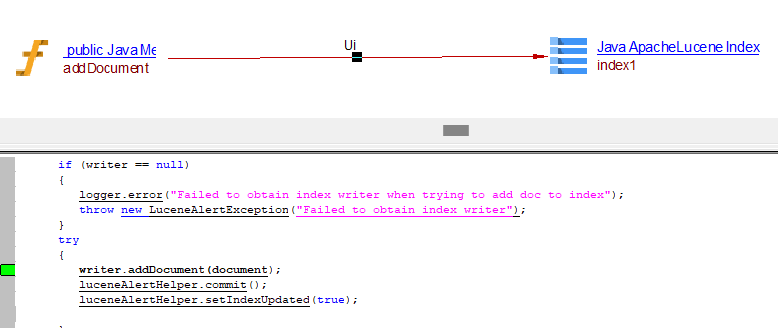 All links are created between the caller Java method object and the ApacheLucene Index object: