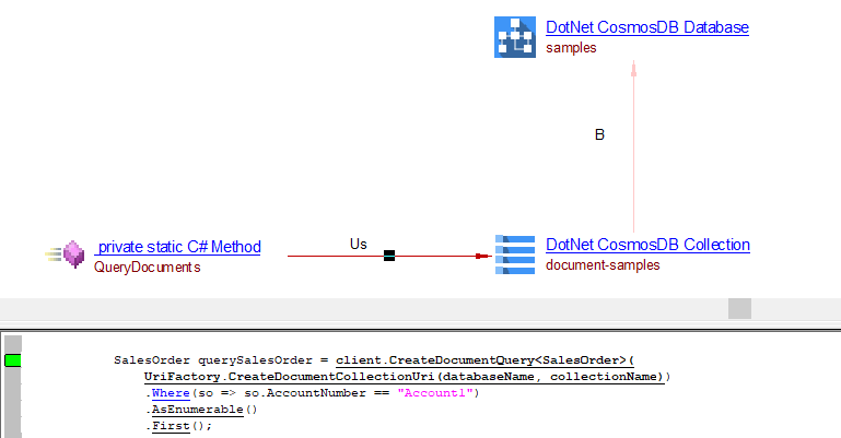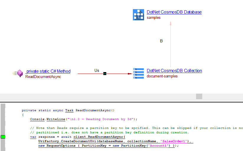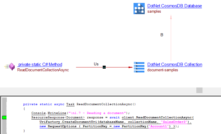 | useSelectLink | Between the caller .NET Method objects and DotNet CosmosDB Collection object | ReadDocumentAsync ReadDocumentCollectionAsync CreateDocumentQuery ReadItemAsync ReadItemStreamAsync ReadContainerAsync ReadContainerStreamAsync GetDocumentAsync |