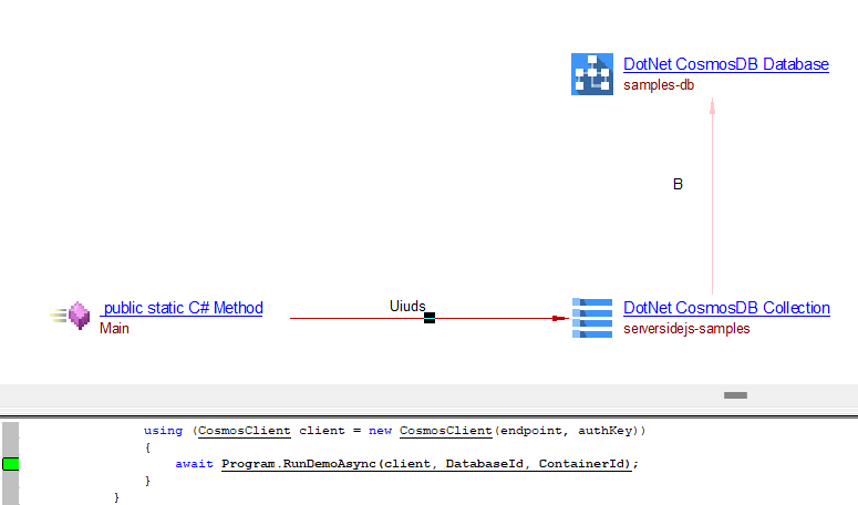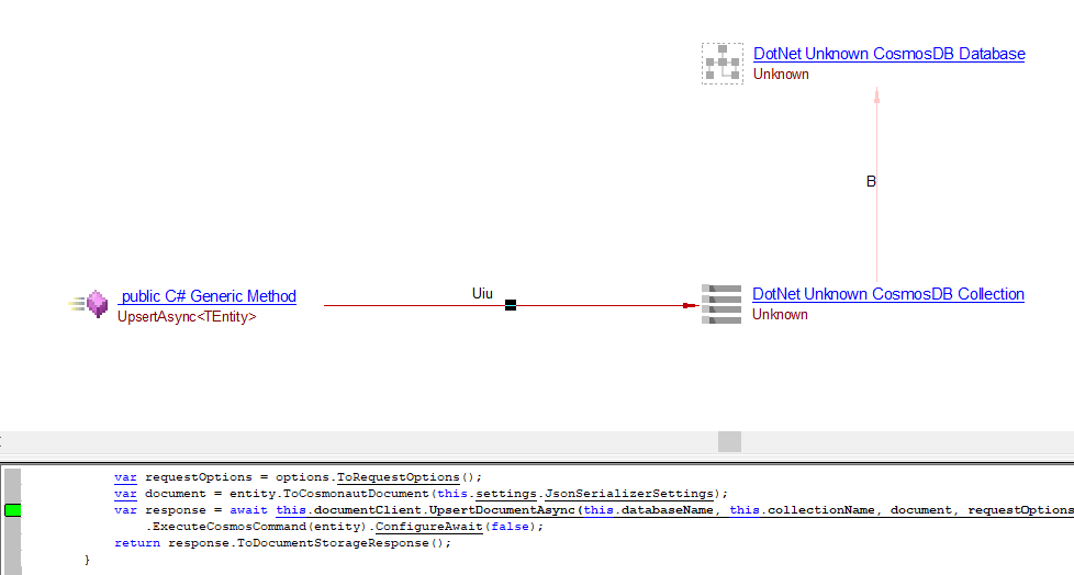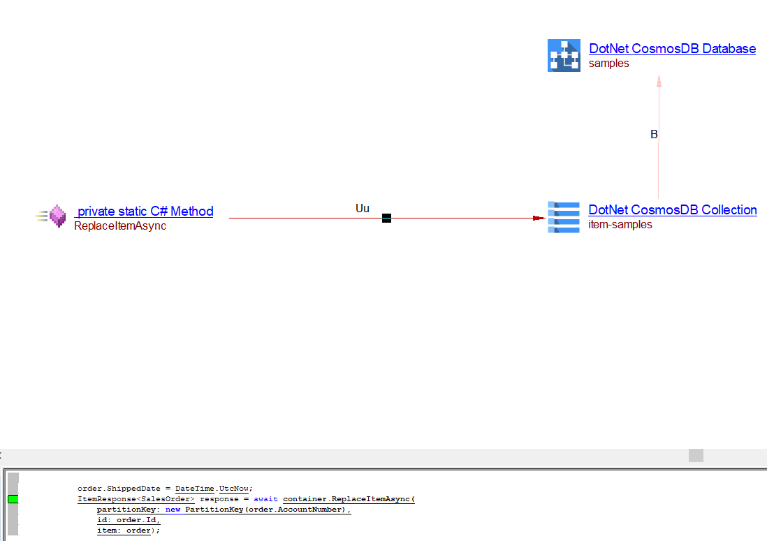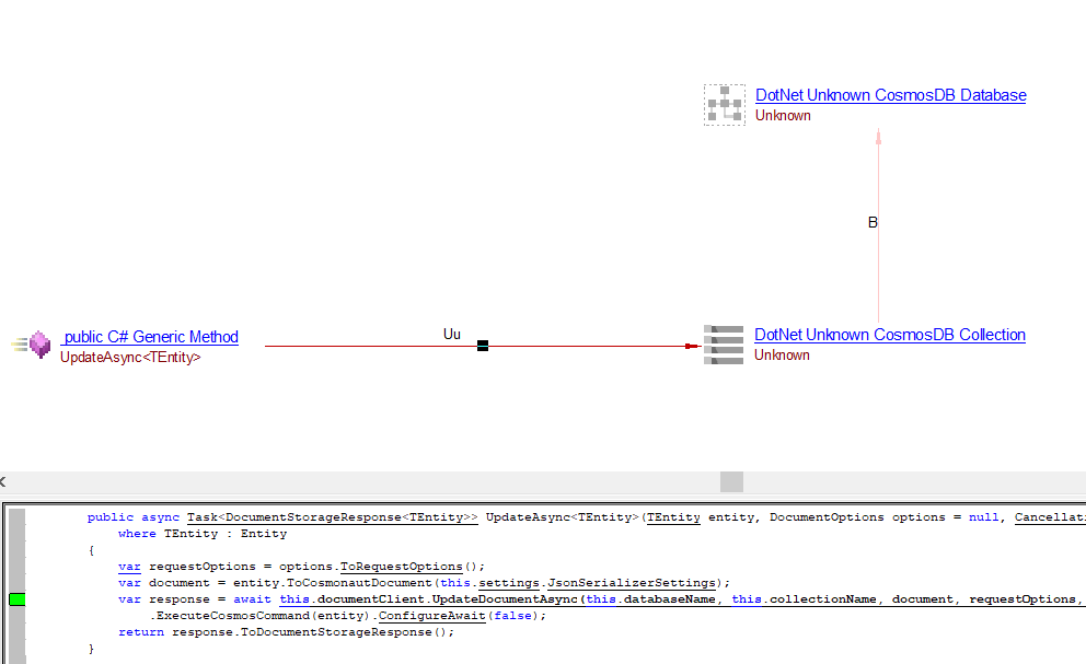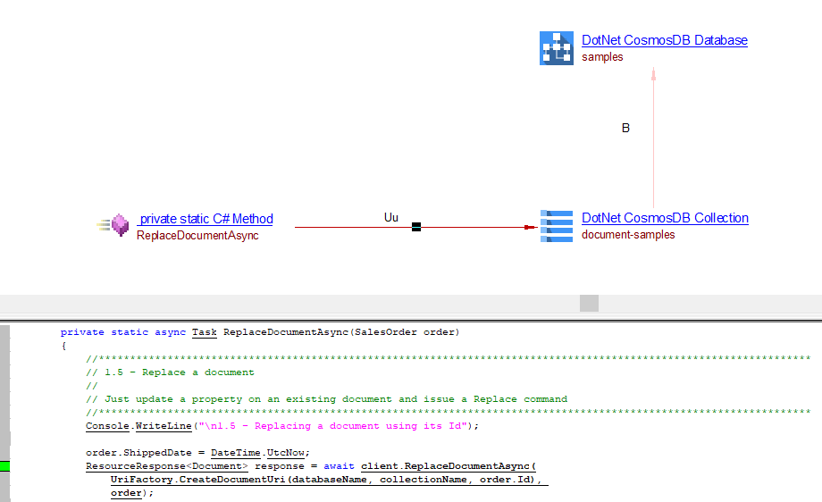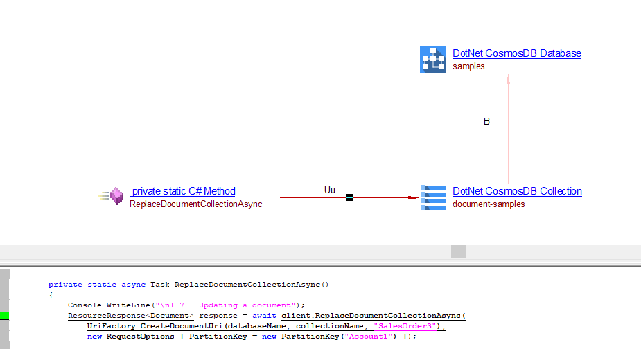 | useUpdateLink | Between the caller .NET Method objects and DotNet CosmosDB Collection object | ReplaceDocumentAsync ReplaceDocumentCollectionAsync UpsertDocumentAsync ReplaceItemAsync ReplaceItemStreamAsync ReplaceContainerAsync ReplaceContainerStreamAsync UpsertItemAsync UpsertItemStreamAsync UpdateDocumentAsync UpdateCollectionAsync |