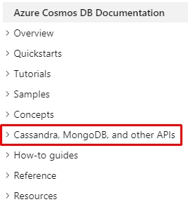 No support for Cassandra API, MongoDB API, Gremlin API, Table API or other APIs built by Microsoft for accessing an Azure Cosmos DB service. See the API reference here: