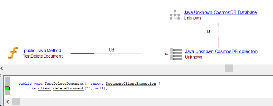 | useDeleteLink | Between the caller Java Method objects and Java CosmosDB Collection object | DeleteDocument DeleteCollection deleteItem |