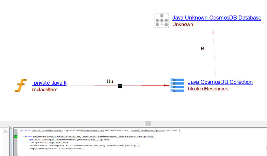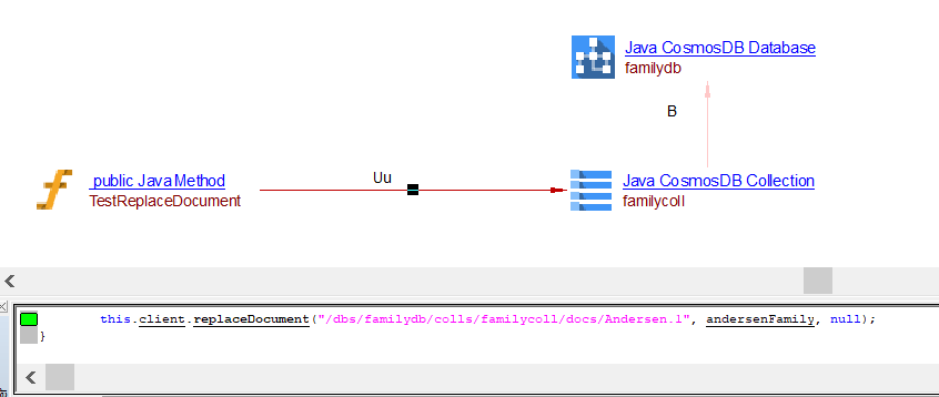 | useUpdateLink | Between the caller Java Method objects and Java CosmosDB Collection object | ReplaceDocument replaceItem |