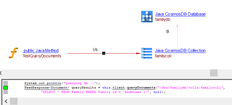 | belongsTo | From Java CosmosDB Collection object to Java CosmosDB Database object | - |