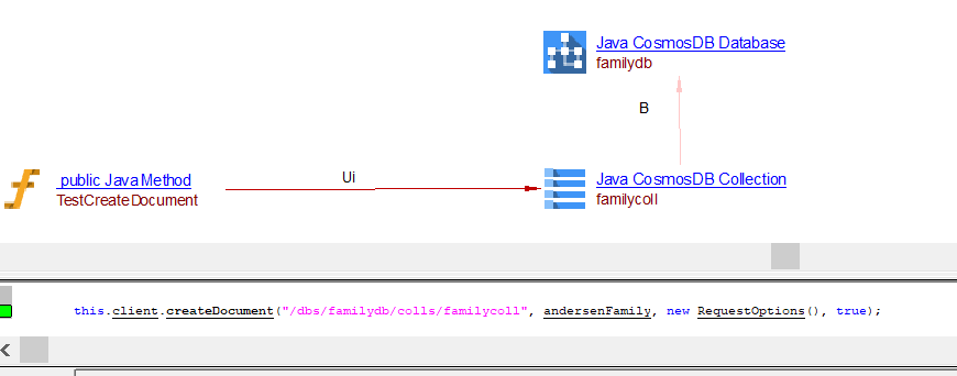 | useLink | Between the caller Java Method objects and Java CosmosDB Collection object | CreateCollection |