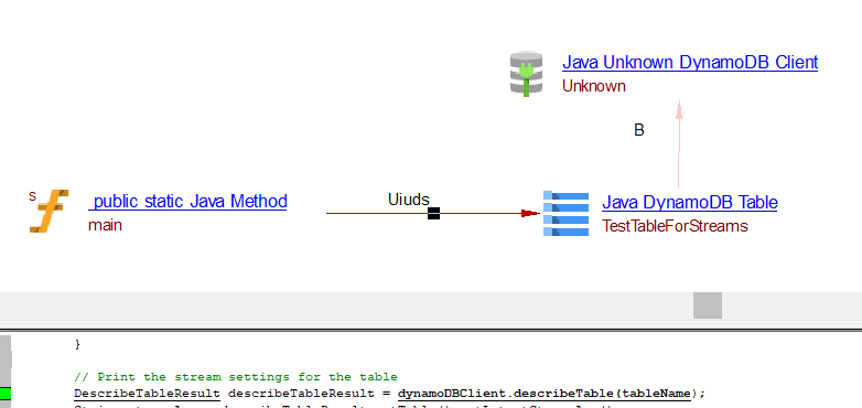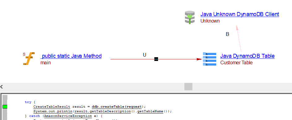 | useLink | Between the caller Java Method objects and Java AWS DynamoDB table object | createTable createTableAsync |