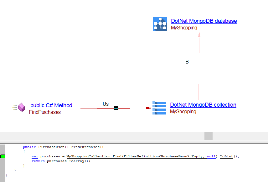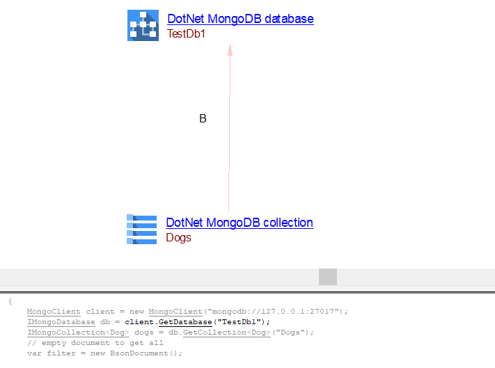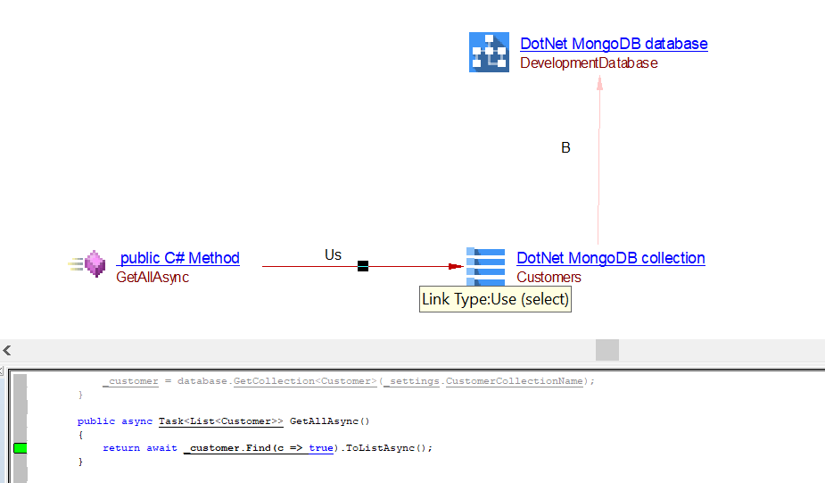 | useSelectLink | Between the caller .NET Method (C#) object and DotNet MongoDB Collection object Between the caller .NET Method (C#) object and DotNet unknown MongoDB Collection object |