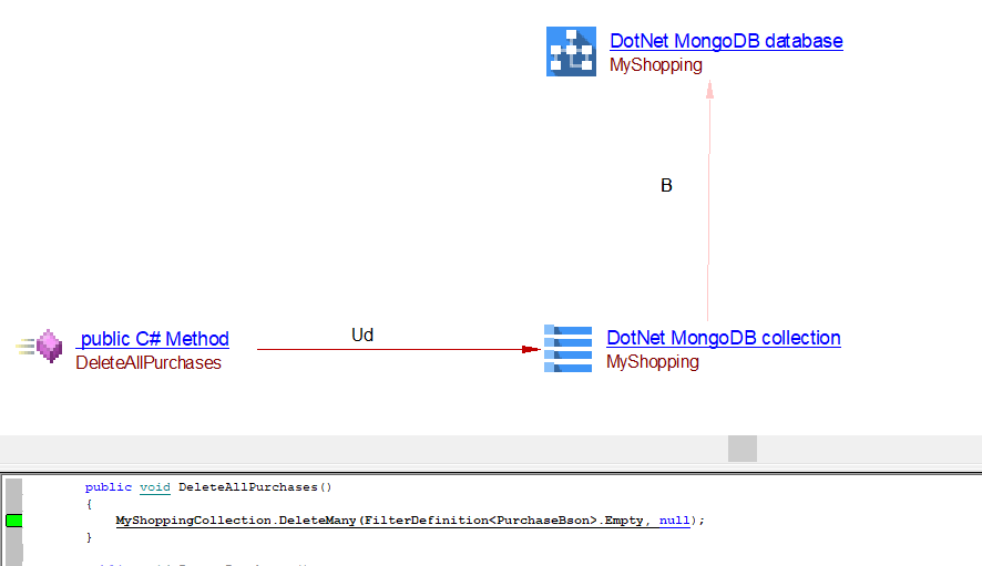 | useDeleteLink | Between the caller .NET Method (C#) object and DotNet MongoDB Collection object Between the caller .NET Method (C#) object and DotNet unknown MongoDB Collection object |