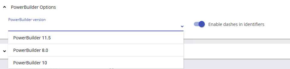 | PowerBuilder version | Select the PowerBuilder version that corresponds to the version of the application you want to analyze. | ||||