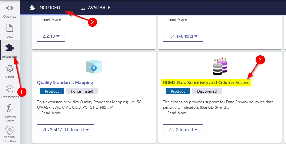 This extension will be automatically downloaded and installed when SQL source code is delivered for analysis. It can be managed using the Application - Extensions interface: