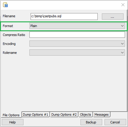 pg_dump.exe -h localhost --username=operator --format plain --schema-only --schema=castpubs --port=2280 --file=c:\temp\castpubsDDL.sql postgres