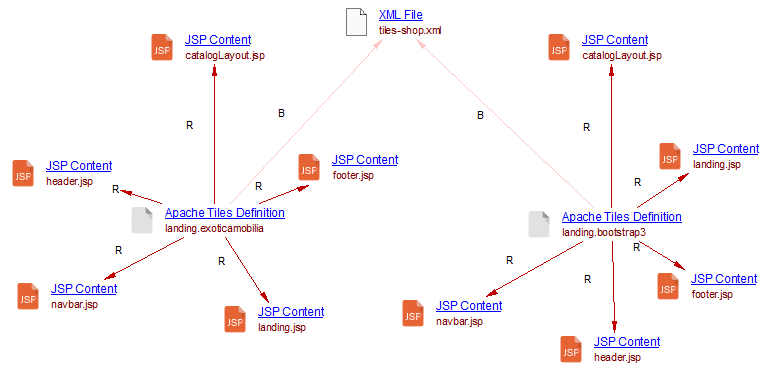 Apache Tiles are defined in xml files present mainly under the “WEB-INF” directory, but not always. “Apache Tiles definition” objects are created with links to jsp files. For example: