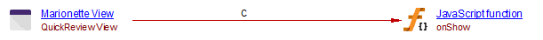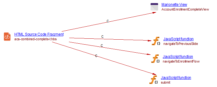 In some cases (events), view functions are directly called from the html/hbs file. In this case, call links are created from the html/hbs file to the function:
