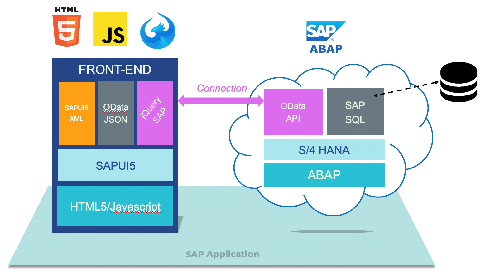 Here is a snapshot showing a full transaction from a SAPUI5 XML view to a SAP table with a link between client and ABAP server (Http request service and SAPUI5 ABAP operation):