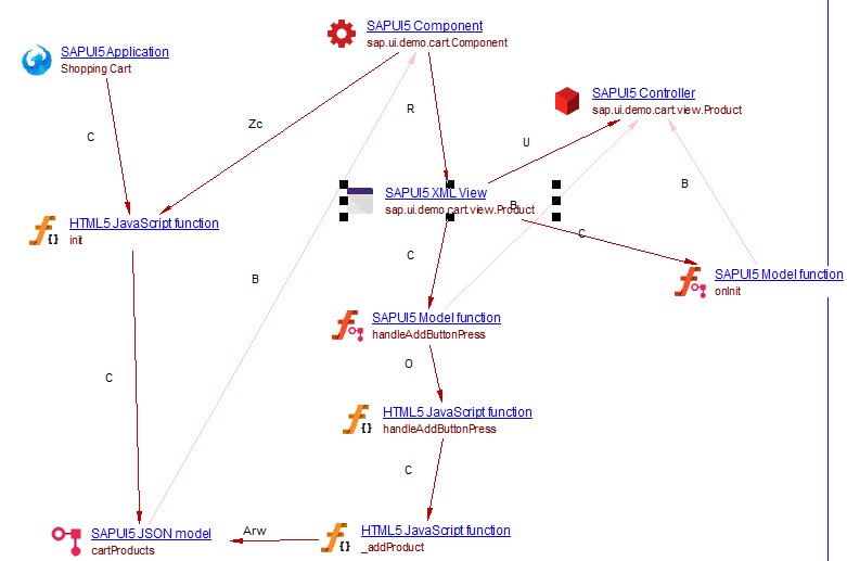 The main purpose of this extension is to modelize the front-end part (SAPUI5 source code) of your SAP Application and to identify links between HTTP request services and ABAP operations /JavaScript functions, to enable linking from the Web App front-end right through to the back-end. Therefore if your SAP application contains SAPUI5 source code and you want to view these object types and their links with other objects, then you should install this extension.