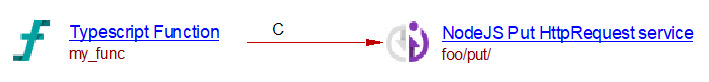 The analysis of the following code will create a Node.js Put HttpRequest named foo/put/ with a call link from my_func to that request:
