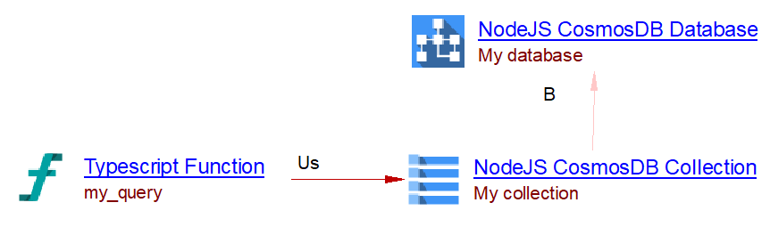 The @azure/cosmos package is supported. Whenever a container client use one of the method listed in the following table, a link is created to the corresponding collection.